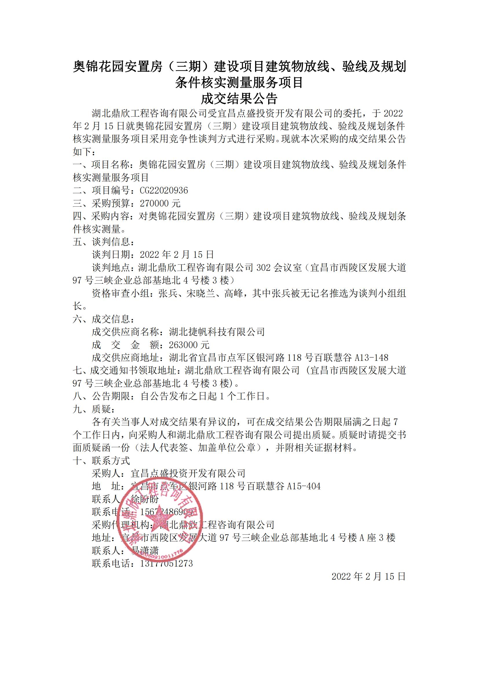 奧錦花園安置房(三期)建設(shè)項(xiàng)目建筑物放線、驗(yàn)線及規(guī)劃條件核實(shí)測(cè)量服務(wù)項(xiàng)目成交結(jié)果公告