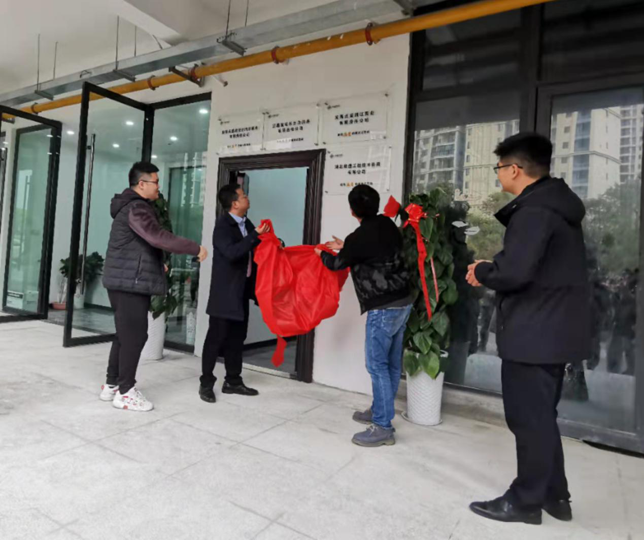 最后,全體員工在揭牌儀式現(xiàn)場合影留戀。