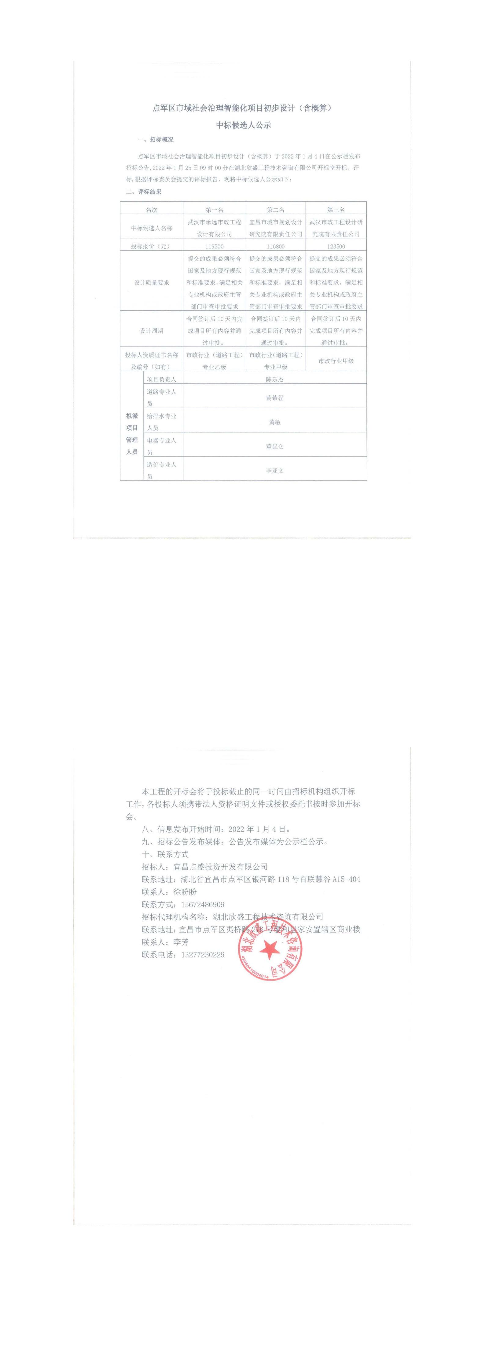 點軍區(qū)市域社會治理智能化項目初步設計(含概算)中標候選人公示