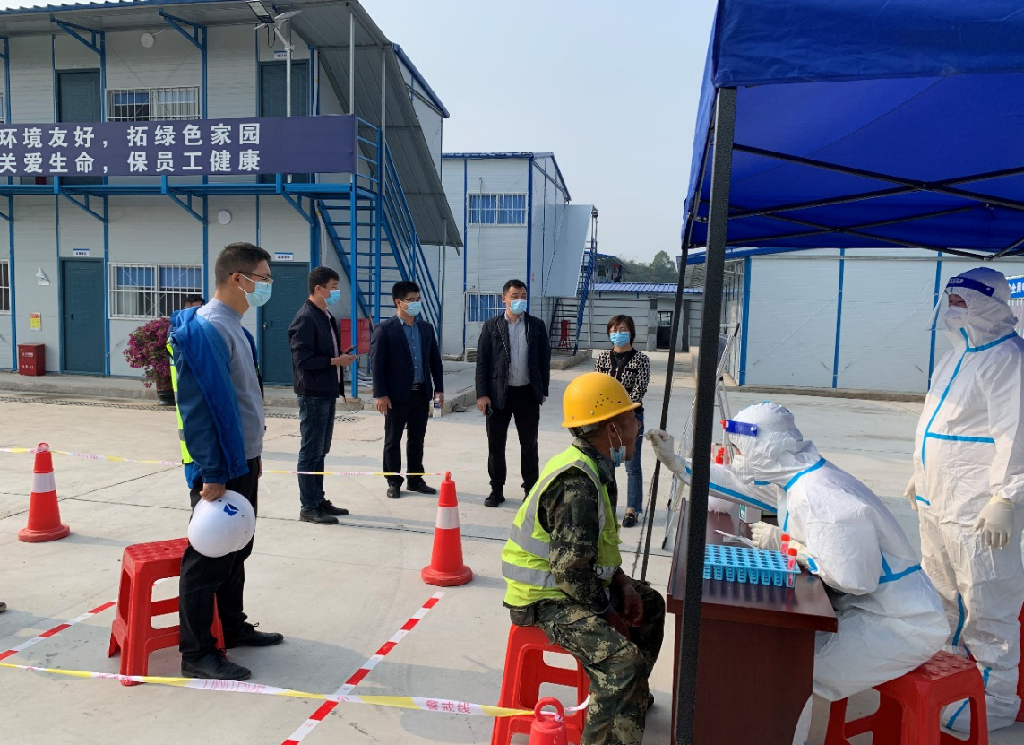 區(qū)委副書記王建紅現場督導相關工作,高度肯定了這次工地核酸采樣試點工作。要求項目工地要堅守“幸福生活共同締造”信念,將工地設置自主核酸采樣點的方式推廣到全區(qū),讓工人們能不出工地做核酸,最大限度的保障疫情防控和項目施工兩不誤!
