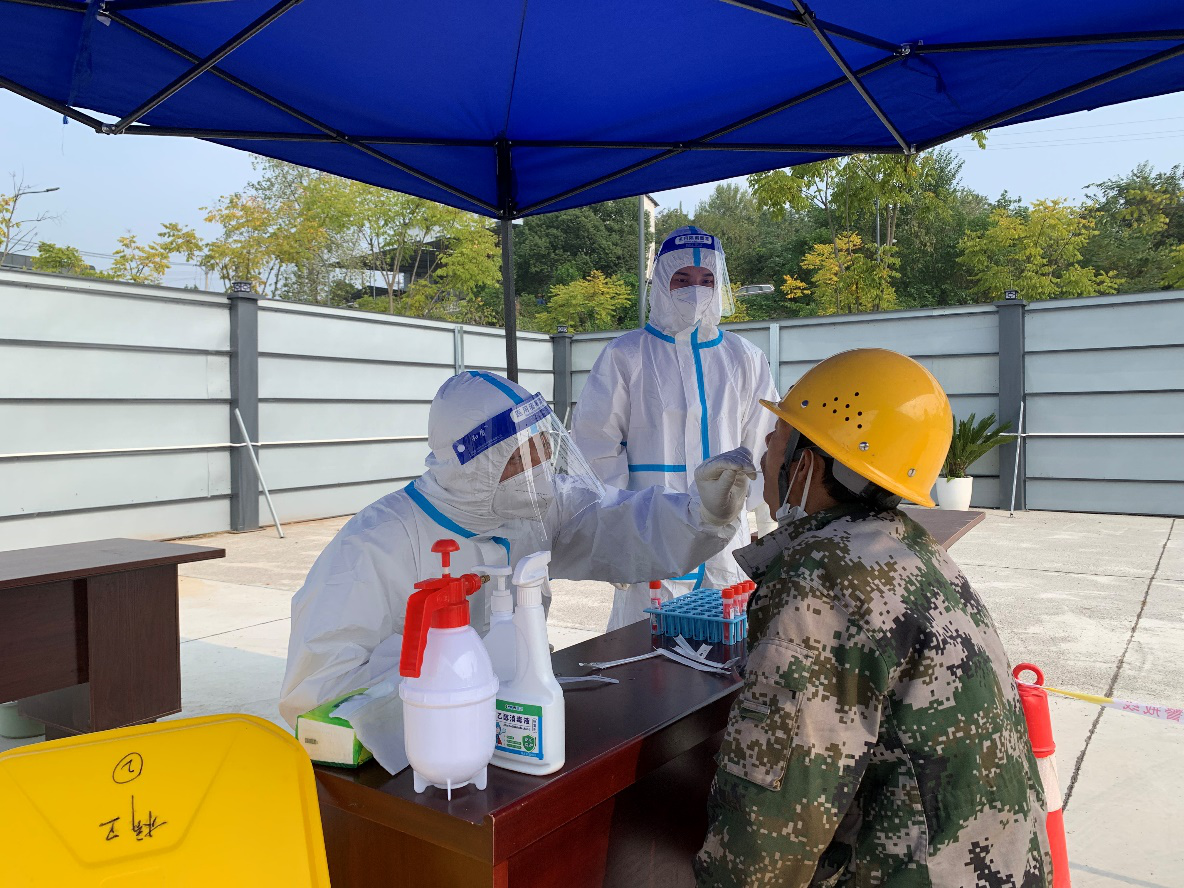 11月5日,為響應區(qū)政府防疫部門有關防疫要求,全面筑牢疫情防線,切實保障全體施工人員的身體健康和生命安全,點盛公司聯動點軍區(qū)橋邊衛(wèi)生院和國機集團在奧錦花園安置房(三期)項目部開展核酸采樣試點運行工作。取得核酸采樣合格證的奧錦花園三期項目安全員李懿、龍明超為本項目300余名工人順利的完成了核酸采樣工作。