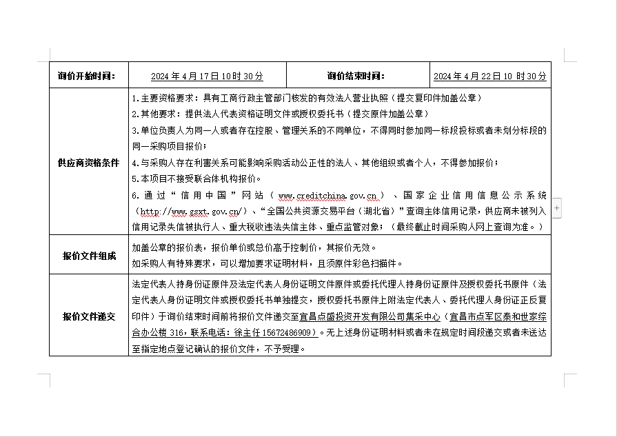 詢價(jià)公告