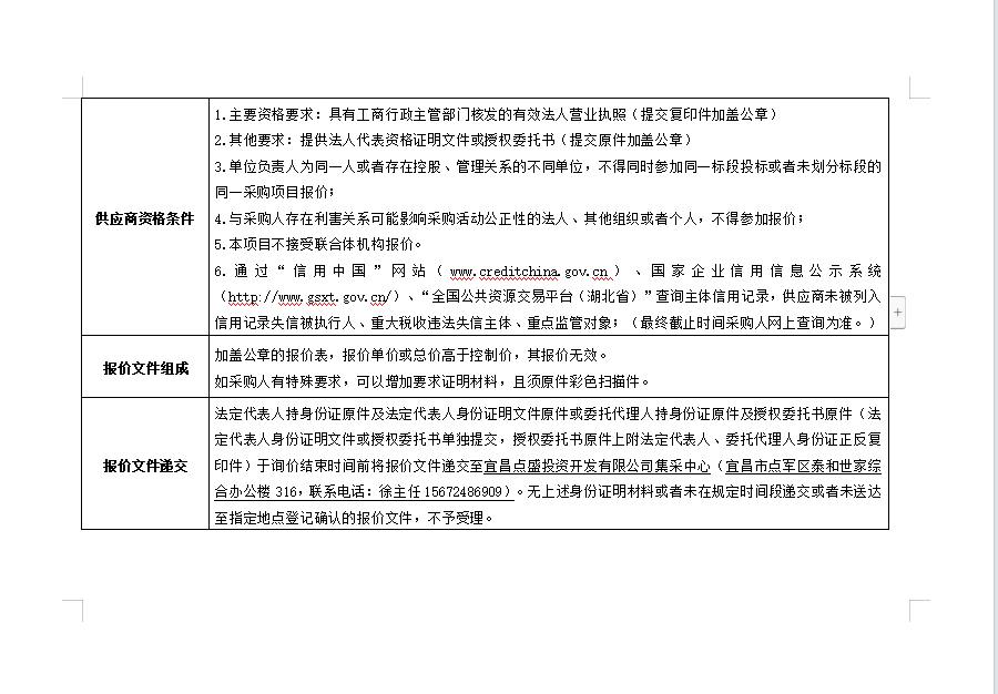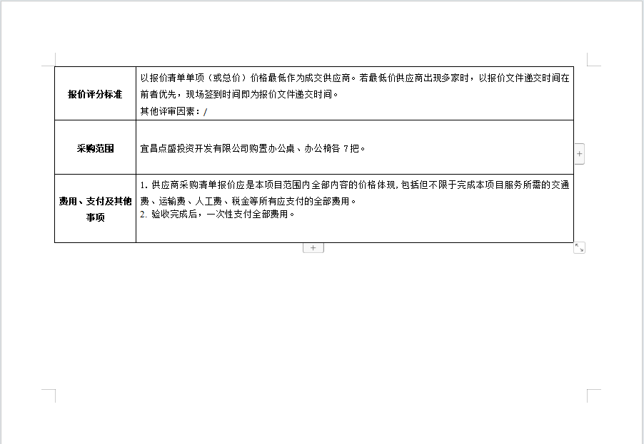 宜昌點盛投資開發(fā)有限公司2024年第二季度辦公桌椅采購項目 詢價公告
