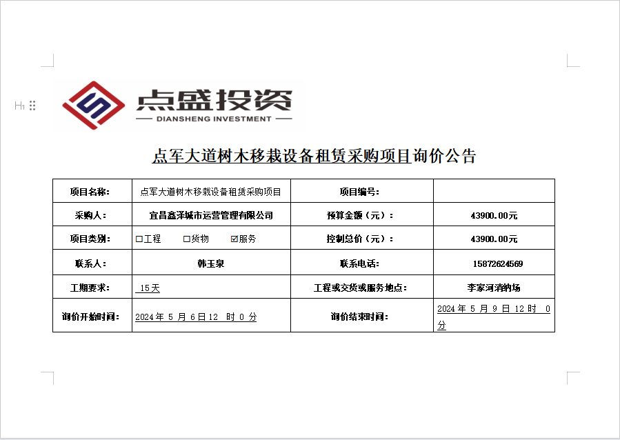 發(fā)布時間:2024/5/6 來源:宜昌點(diǎn)盛投資開發(fā)有限公司 訪問:299