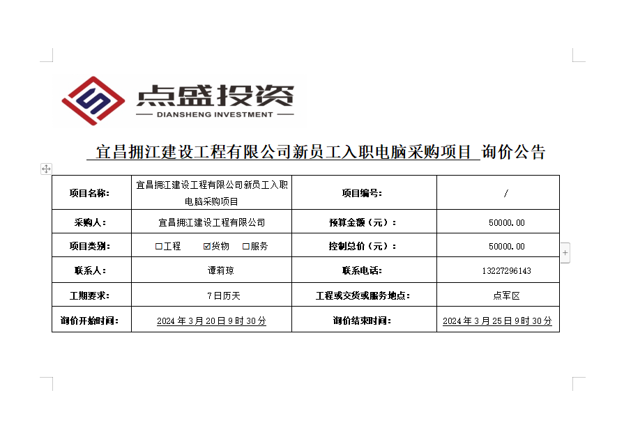 宜昌擁江建設(shè)工程有限公司新員工入職電腦采購(gòu)項(xiàng)目詢價(jià)公告