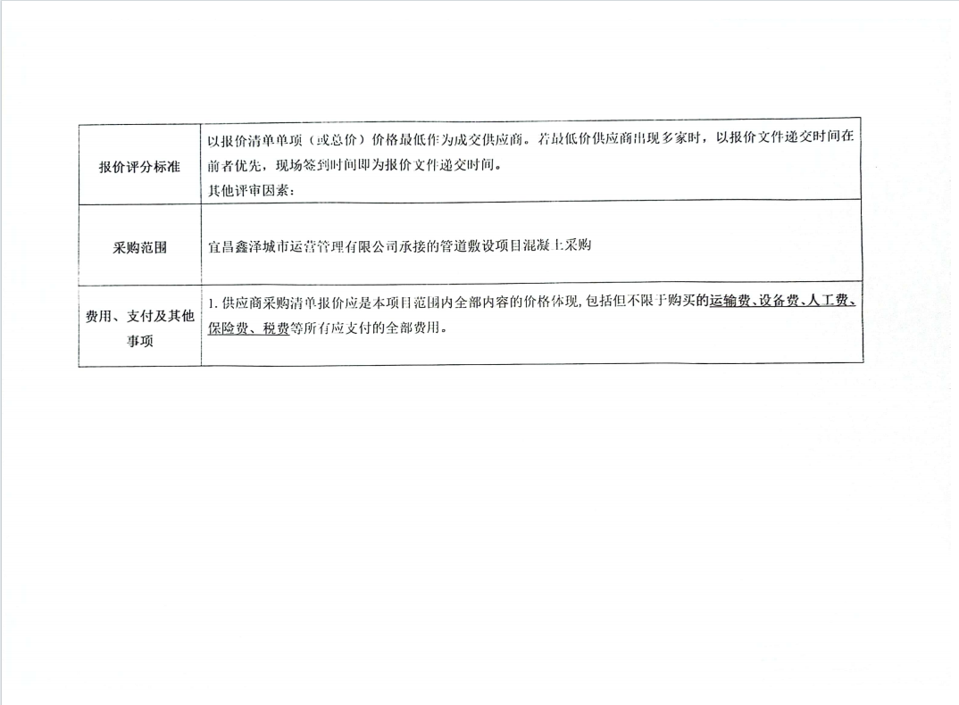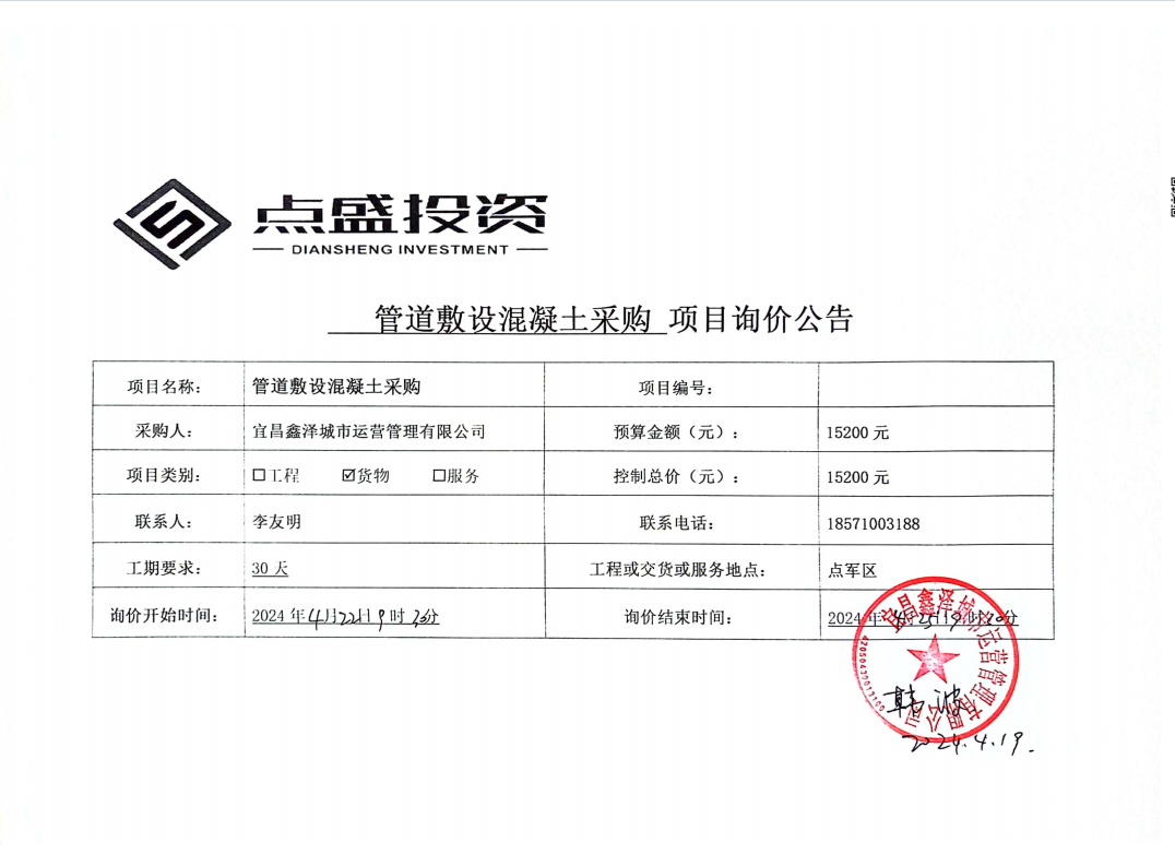 管道敷設混凝土采購項目詢價公告