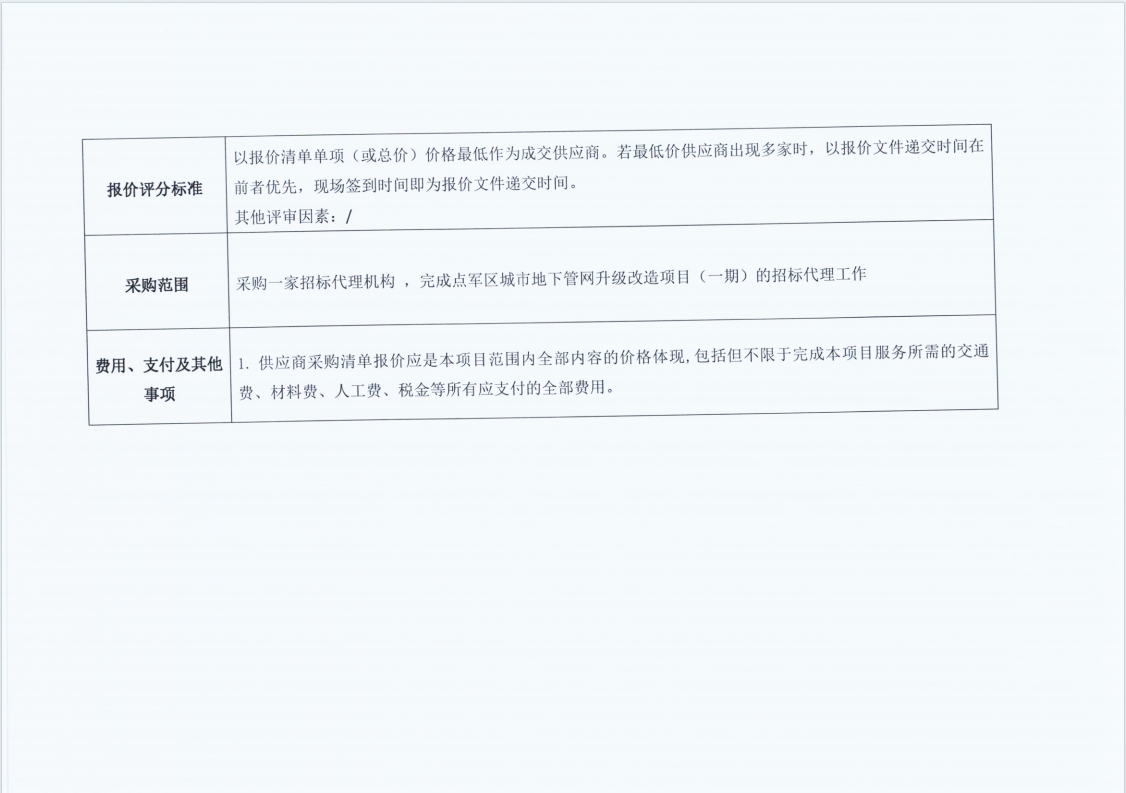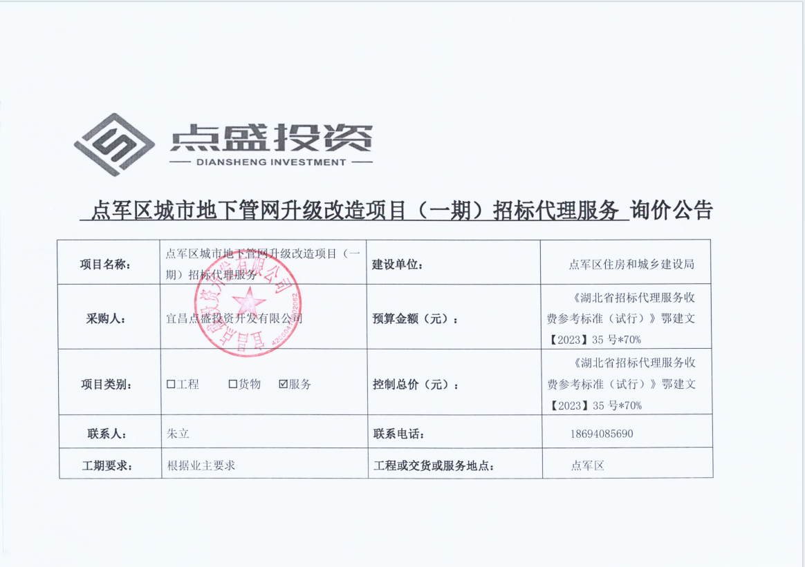 點(diǎn)軍區(qū)城市地下管網(wǎng)升級改造項(xiàng)目(一期)招標(biāo)代理服務(wù) 詢價公告