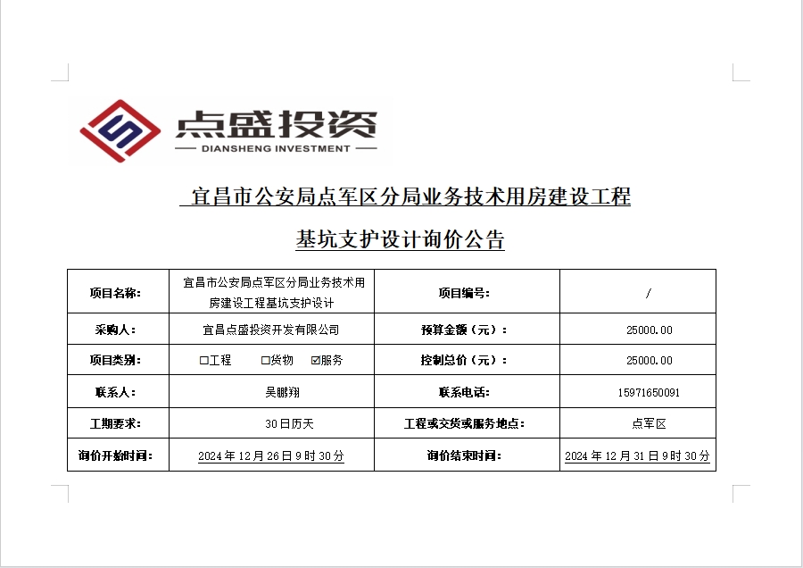 宜昌市公安局點軍區(qū)分局業(yè)務(wù)技術(shù)用房建設(shè)工程基坑支護設(shè)計詢價公告