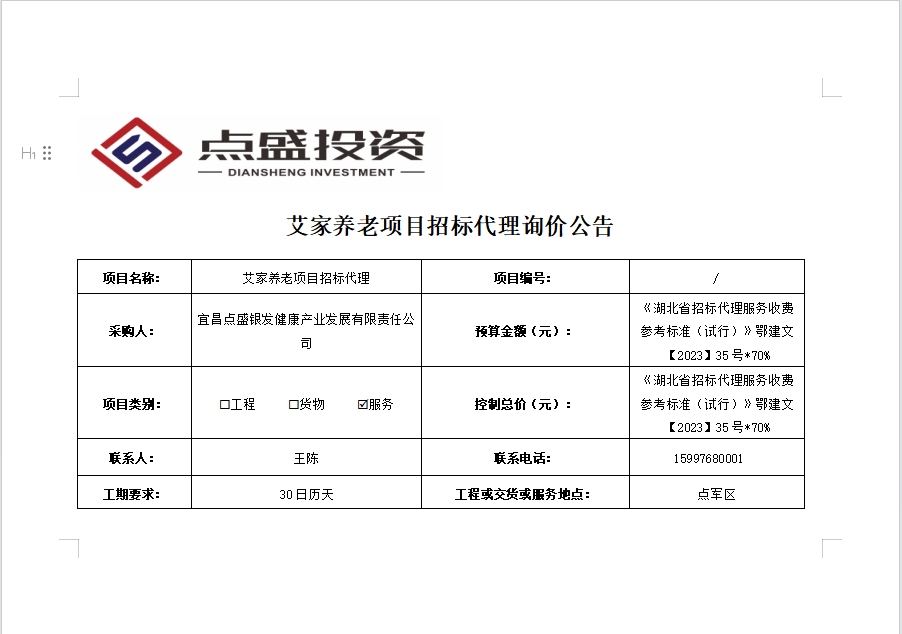 艾家養(yǎng)老項目招標(biāo)代理詢價公告