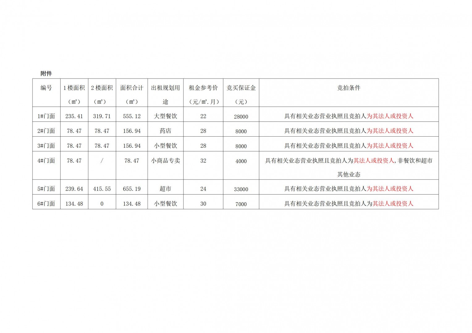 上述第9號(hào)門(mén)面房整體出租1至2樓,10#門(mén)面房只出租一樓。目前,上述門(mén)面房均處于空置的毛坯狀態(tài),現(xiàn)狀分別對(duì)外出租。相關(guān)競(jìng)買(mǎi)事項(xiàng)詳見(jiàn)本公司拍賣(mài)資料中的《競(jìng)買(mǎi)協(xié)議》樣本特別說(shuō)明條款內(nèi)容,且標(biāo)... |